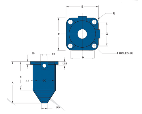 | BRACO CAT NO. | GLAND SIZE | CABLE OD RANGE | A | B | C | D | E | F | G | H | J | R | T |
